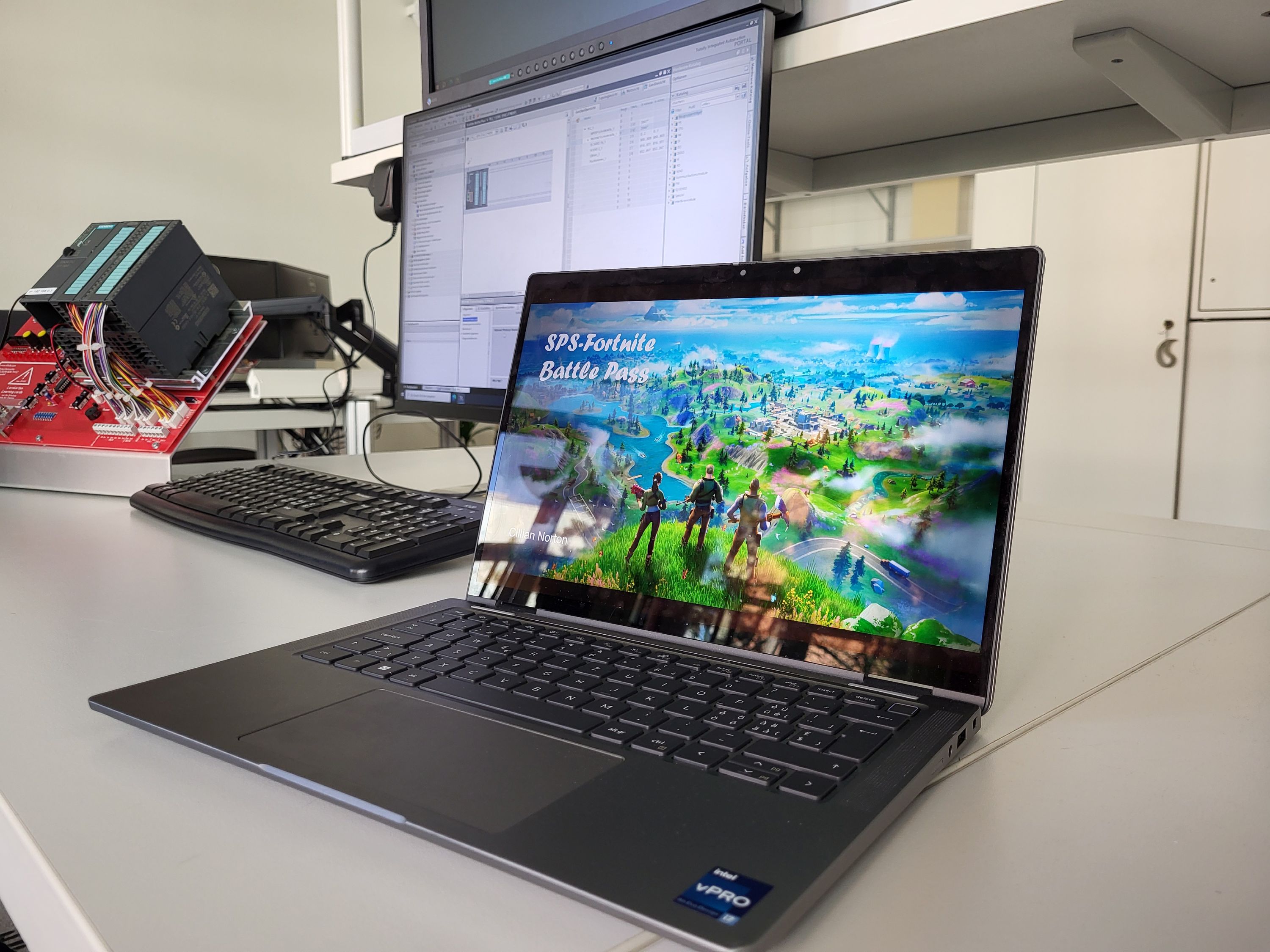 Gefragt war von den Lernenden ein eigenes Projekt mit einer SPS (Speicherprogrammierbaren Steuerung), die frei programmiert werden konnte. Das Thema war frei wählbar. Cillian hatte die Idee zum «Fortnite Battle Pass». Dabei geht es um so genannte «Skins»; das sind Erscheinungsbilder eines Spielcharakters, die man sich als Spieler nach Erreichen eines bestimmten Levels beziehungsweise einer Anzahl Punkte freischalten kann. Solche Freischaltungen für verschiedene Skins programmierte Cillian erfolgreich mit einer SPS.